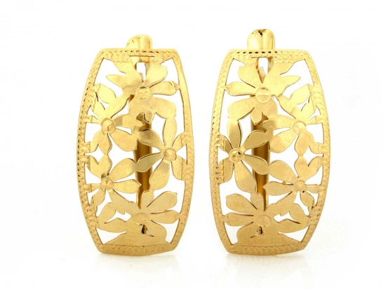 Kolczyki złote angielskie ażurowe błyszczące w kwiatki