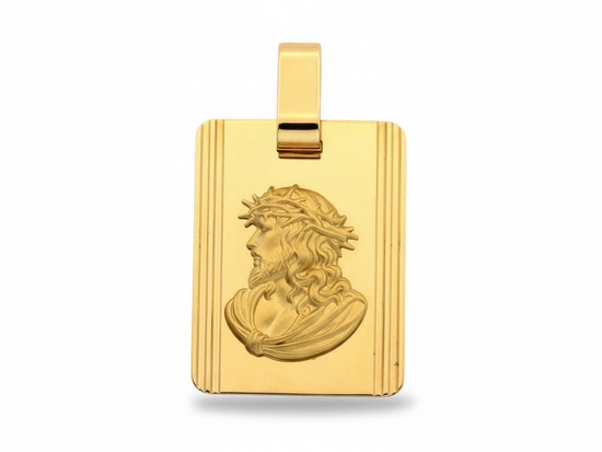 Duży prostokątny złoty medalik Jezus w cierniowej koronie