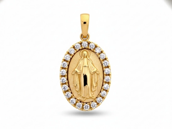 Złoty medalik dla dziewczynki owalny z Niepokalaną