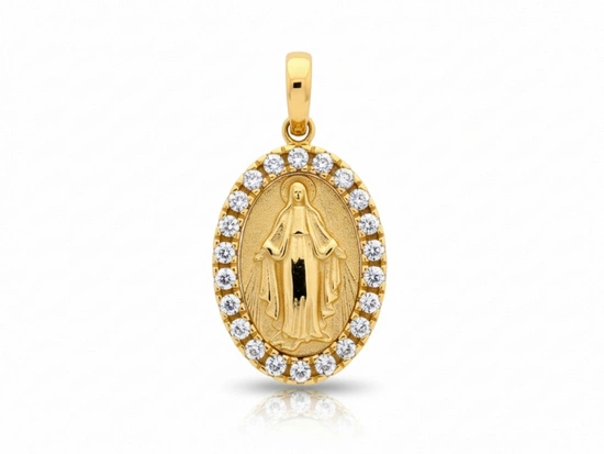 Złoty medalik dla dziewczynki owalny z Niepokalaną