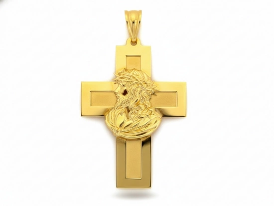 Złota zawieszka krzyżyk Jezus w koronie cierniowej