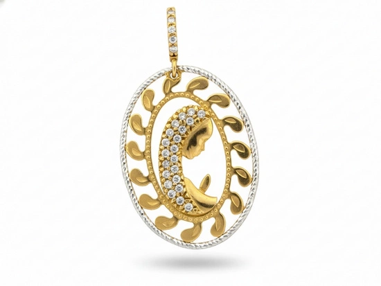 Zawieszka złoty medalik Matka Boża w modlitwie owalny ażurowy