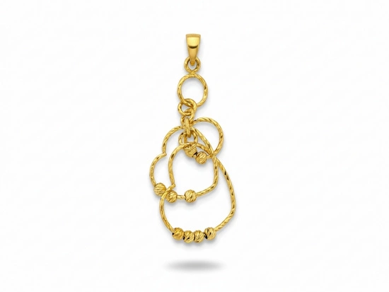 Zawieszka złota długa z przeplatanych serc