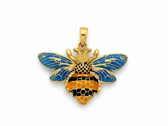 Zawieszka złota duża pszczoła z emalią