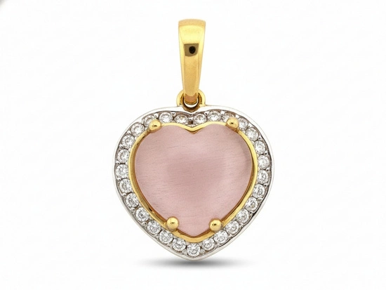 Zawieszka złota serce z różowym kwarcem i cyrkoniami