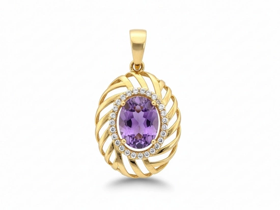 Zawieszka złota duża owalna z fioletowym kamieniem
