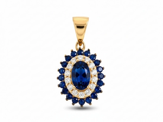 Zawieszka złota owalna z niebieskimi cyrkoniami