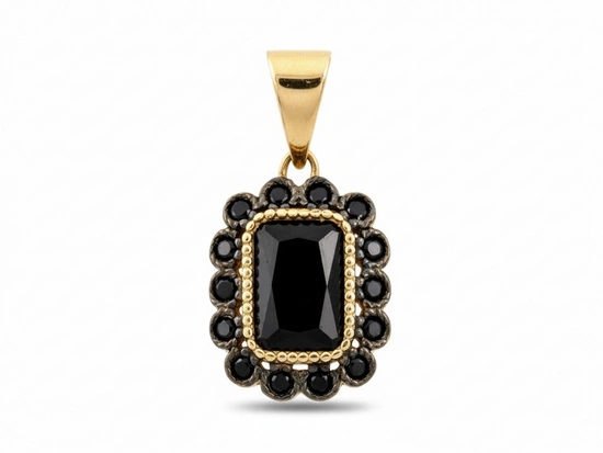 Zawieszka złota prostokątna z czarnymi kamieniami