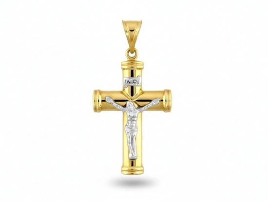 Złoty dwukolorowy krzyżyk duży zawieszka wisiorek