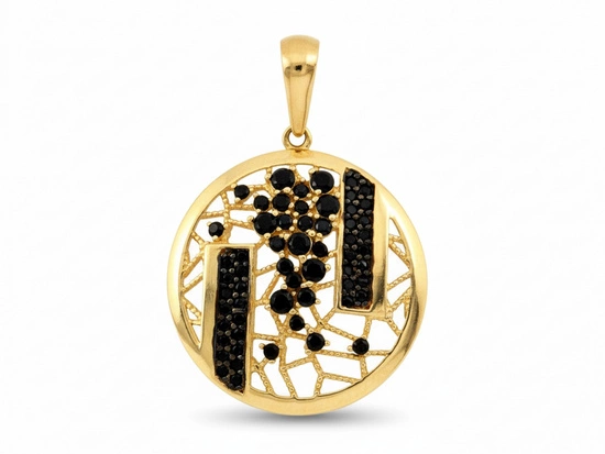 Zawieszka złota okrągła ażurowa z czarnymi cyrkoniami
