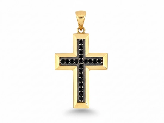 Krzyżyk złoty zawieszka z czarnymi cyrkoniami wisiorek