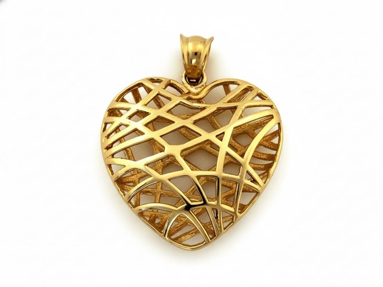 Złota zawieszka ażurowe serce przestrzenne wypukłe