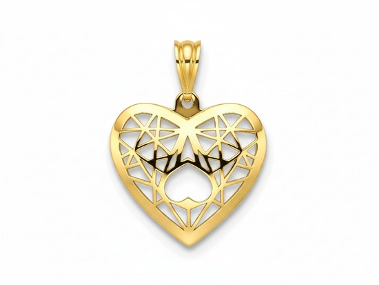 - Wysokość: 17.5mmSzerokość: 19.4mmUwagi dodatkowe: Zawieszka złota ma kształt serca z ażurowym, geometrycznym wzorem, który tworzy ciekawy, przestrzenny efekt. Na jednym z boków widoczne jest wycięcie w kształcie mniejszego serca, dodające elegancji i lekk