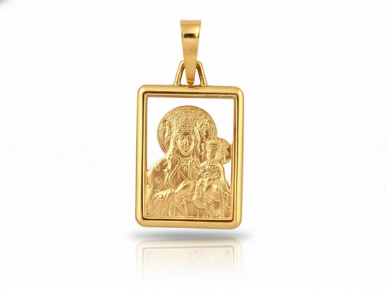 Złoty medalik Matka Boska Częstochowska w prostokątnej ramie