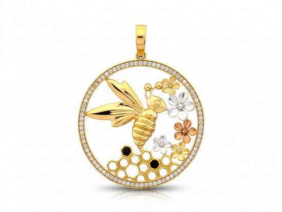 Zawieszka złota duża okrągła pszczoła kwiaty plastry miodu