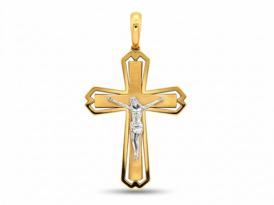 Zawieszka złoty krzyżyk dwukolorowy z Jezusem