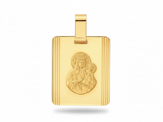 Duży złoty medalik prostokątna blaszak Matka Boska Częstochowska