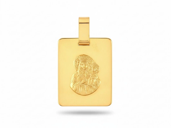 Duży złoty medalik prostokątny z Matką Boską Częstochowską