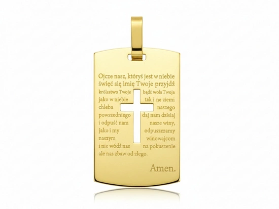 Medalion złoty blaszka z modlitwą Ojcze Nasz