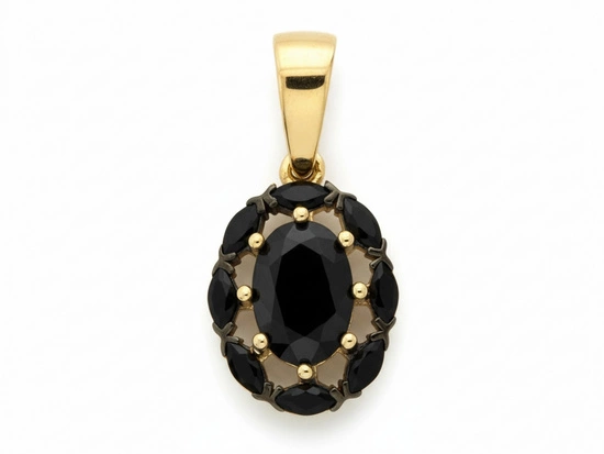 Złota zawieszka owalna z czarnymi cyrkoniami