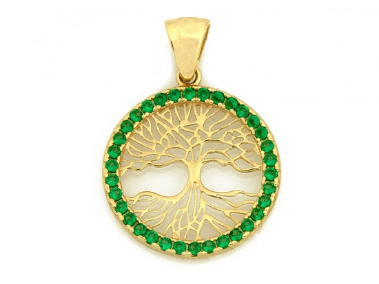 Zawieszka złota ażurowa z drzewkiem szczęścia z zielonymi cyrkoniami