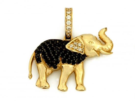 Zawieszka złota duży słoń z czarnymi cyrkoniami
