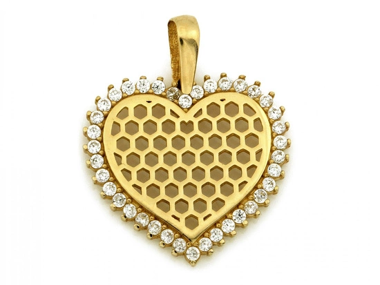 Zawieszka złota serce ażurowe z cyrkoniami