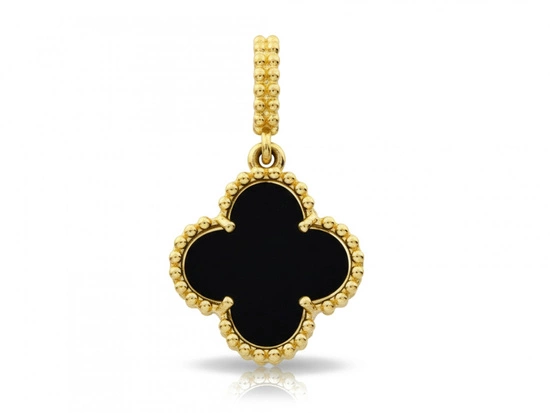 Zawieszka złota modny koniczynka, kwiatek z onyksem