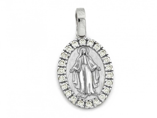 Złoty medalik dla dziewczynki owalny z Niepokalaną z cyrkoniami