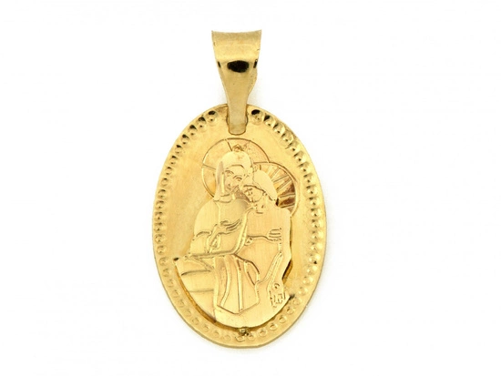 Zawieszka złota owalny medalik Maryja i ciało Jezusa