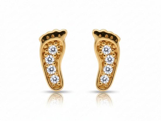 Kolczyki złote stópki z cyrkoniami