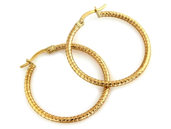 - Złote kolczyki o ponadczasowym kształcie, które będą pięknym dodatkiem dla każdej Pani. Nasze surowe normy kontrolne oraz 20 letni staż w branży jubilerskiej gwarantuje Państwu zakup biżuterii najwyższej jakości. W połą