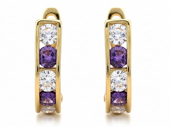 Złote kolczyki przecinki z fioletowymi cyrkoniami