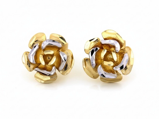 Kolczyki złote dwukolorowe kwiatki na sztyfcie