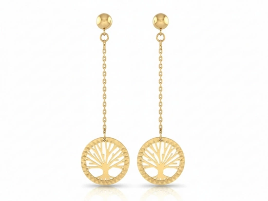 Kolczyki złote drzewko szczęścia na długim łańcuszku