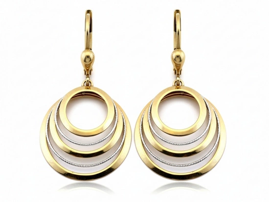 Kolczyki złote wiszące dwukolorowe okrągłe z obręczy