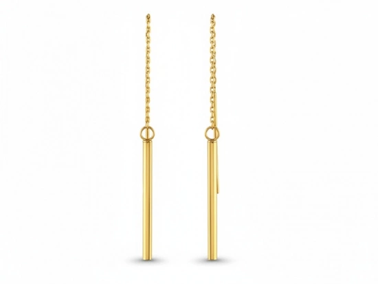 Kolczyki złote przewlekane z długim sztywnym elementem