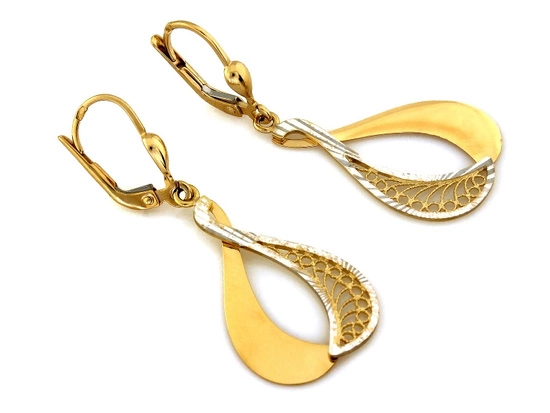 - Złote kolczyki o ponadczasowym kształcie, które będą pięknym dodatkiem dla każdej Pani. Nasze surowe normy kontrolne oraz 20 letni staż w branży jubilerskiej gwarantuje Państwu zakup biżuterii najwyższej jakości. W połą