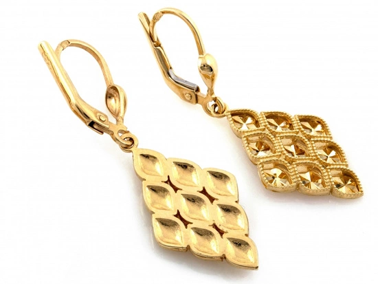 - Złote kolczyki o ponadczasowym kształcie, które będą pięknym dodatkiem dla każdej Pani. Nasze surowe normy kontrolne oraz 20 letni staż w branży jubilerskiej gwarantuje Państwu zakup biżuterii najwyższej jakości. W połą