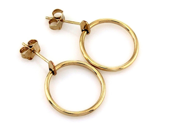 - Złote kolczyki o ponadczasowym kształcie, które będą pięknym dodatkiem dla każdej Pani. Nasze surowe normy kontrolne oraz 20 letni staż w branży jubilerskiej gwarantuje Państwu zakup biżuterii najwyższej jakości. W połą