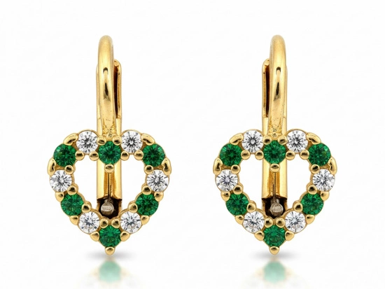 Złote kolczyki z sercem z zielonymi cyrkoniami