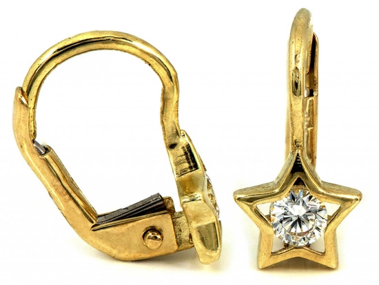 Kolczyki złote gwiazdka z cyrkonią bezpieczne zapięcie