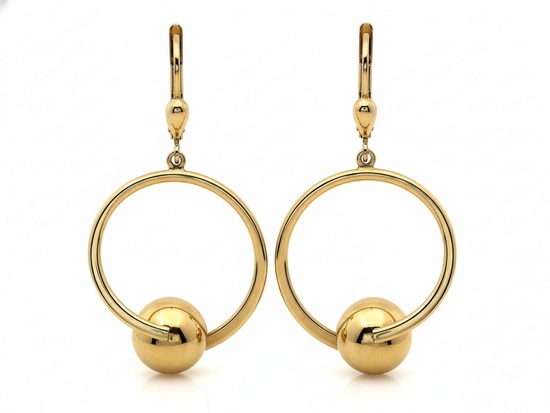 Kolczyki złote eleganckie koła wiszące z dużą kulką