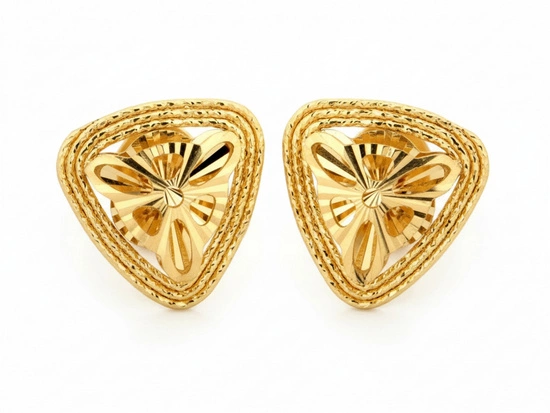 Kolczyki złote błyszczące trójkątne przestrzenne na sztyfcie