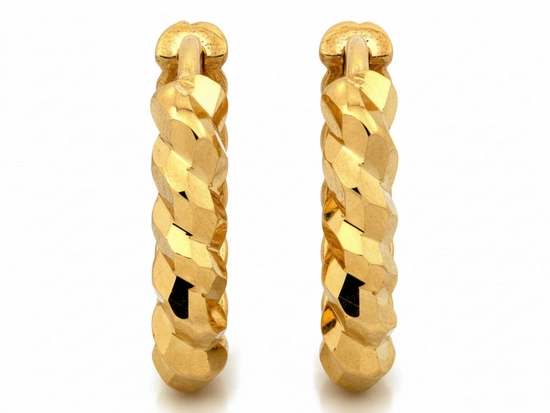 - Złote kolczyki o ponadczasowym kształcie, które będą pięknym dodatkiem dla każdej Pani. Nasze surowe normy kontrolne oraz 20 letni staż w branży jubilerskiej gwarantuje Państwu zakup biżuterii najwyższej jakości. W połą