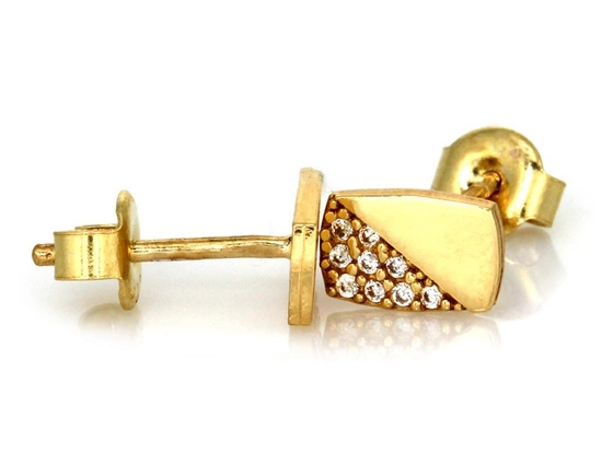 Kolczyki złote na sztyfcie prostokąty z cyrkoniami