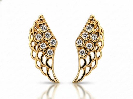 Kolczyki złote przy uchu skrzydła z cyrkoniami