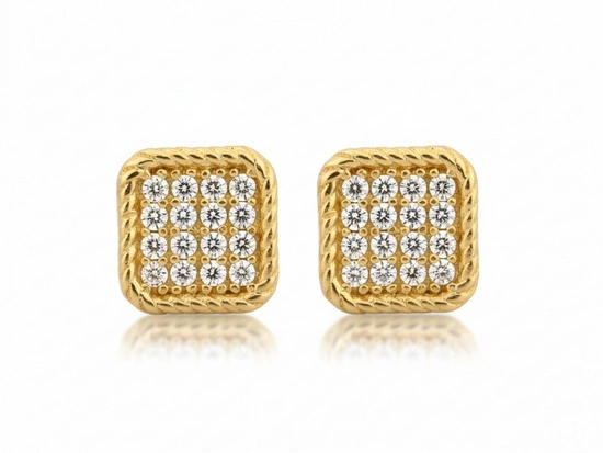 Kolczyki złote kwadraty z cyrkoniami na sztyfcie