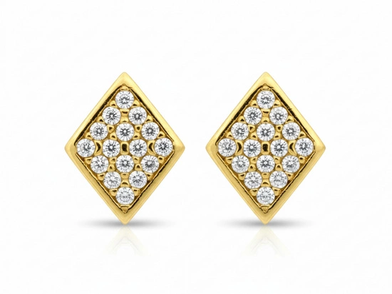 Kolczyki złote romby z cyrkoniami na sztyfcie przy uchu